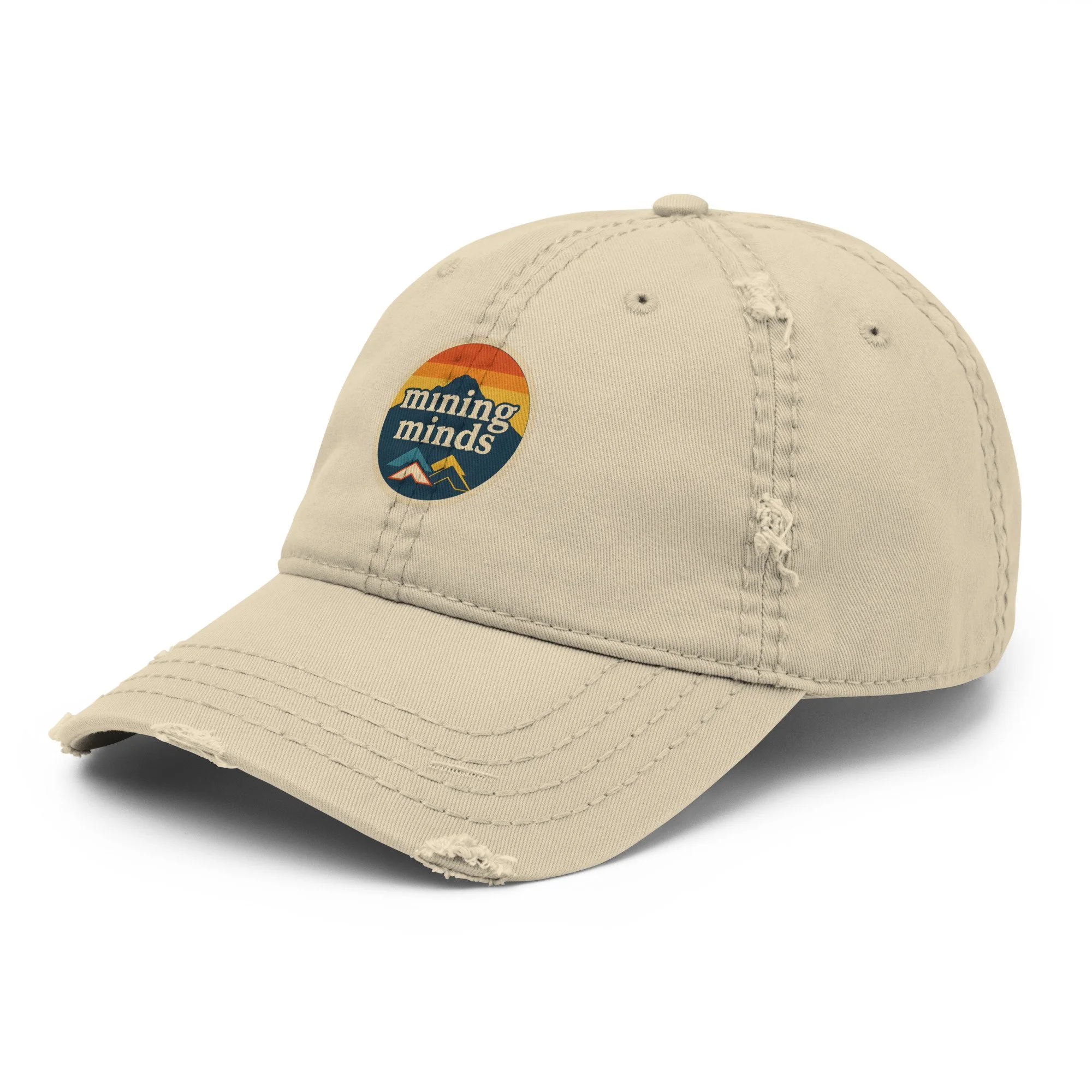 Expand your headwear collection with this fashionable Vintage Mining Minds - Distressed dad hat. With a slightly distressed brim and crown fabric, it’ll add just the right amount of edge to your look. For a quick and easy outfit pair it with slacks, your favorite jeans, and a sports tee.